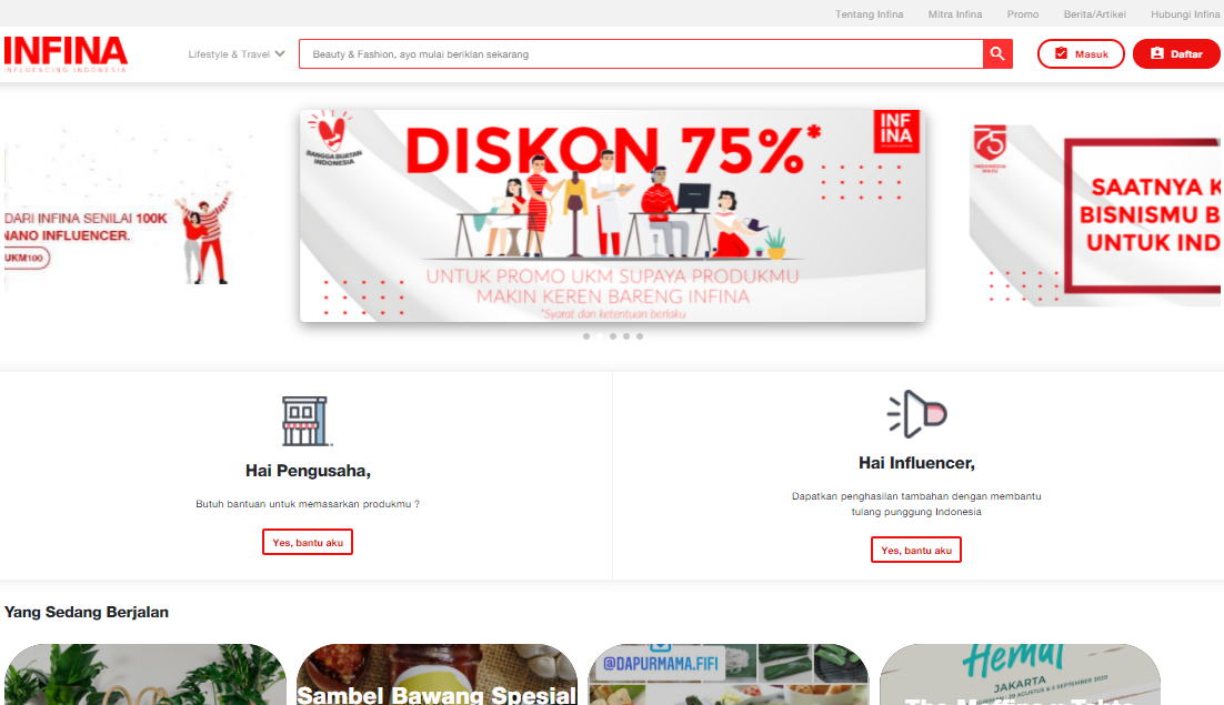 INFINA is a one-stop SME marketing platform that will help Indonesian SMEs to host their own homes. UKM will meet with influencers who will help all the needs of SMEs to run their business more efficiently, easily and effectively, while developing the potential that influencers have.