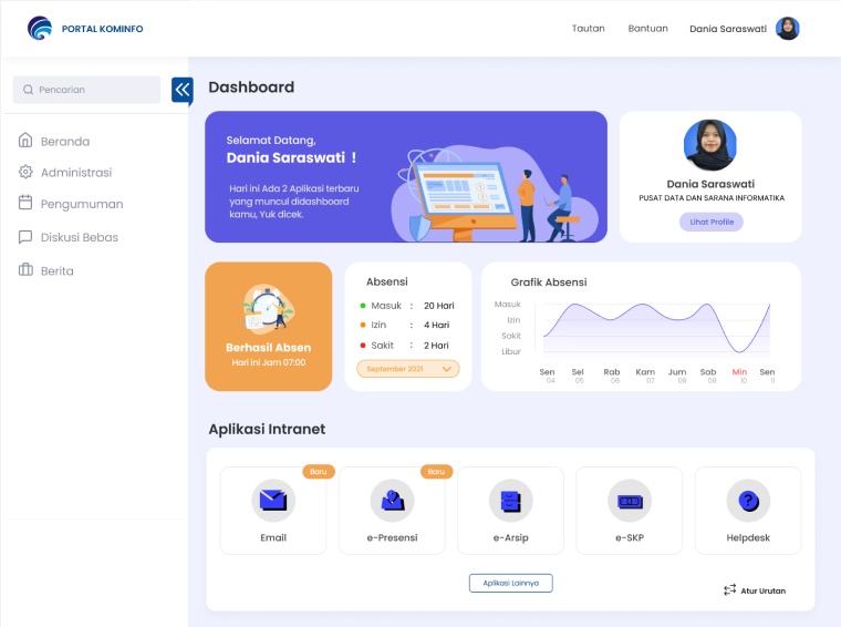 Kominfo Portal Dashboard is Kominfo's internal application. We were given the opportunity to redesign a UI and UX on the Kominfo Portal Dashboard. Provide additional features so that User Experience can work optimally. Redesigning a website is also one of the important things so that the appearance (UI) becomes fresher for users