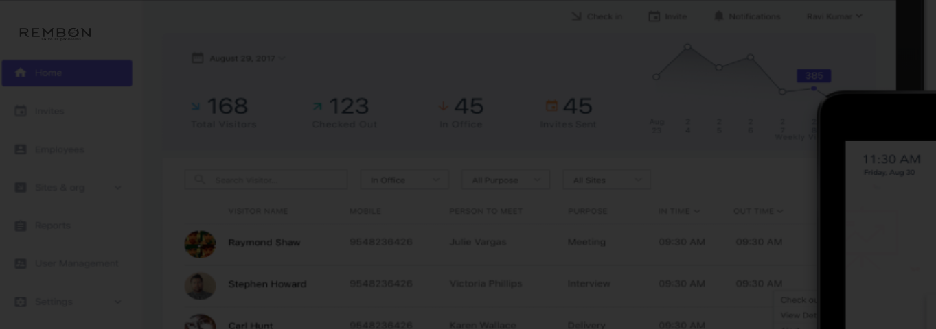 The Rembon visitor management system allows users to manage visitors entering and leaving the facility, seeing unauthorized visitors and manage visitor policies. Other features include visitor pre-registration, monitoring real time and export data. It's suitable for a variety of industries including schools, offices, government, manufacturing and construction. The main features of this solution include tracking visitors, badge printing, visitor's car park, notifications and reporting.